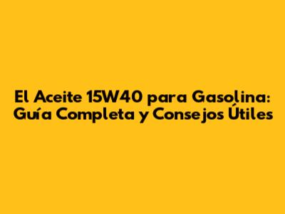 El Aceite 15W40 Para Gasolina: Guía Completa Y Consejos Útiles