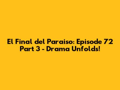 Hey guys! Ready to dive into the rollercoaster that is El Final del Paraiso? In this article, we're breaking down Episode 72, Part 3, and trust me, it’s packed with enough drama to keep you on the edge of your seat. We'll explore the key plot points, character arcs, and those OMG moments that had everyone talking. So, grab your popcorn, and let's get started!