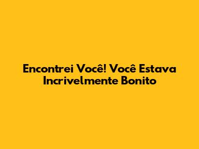 Encontrei Você! Você Estava Incrivelmente Bonito
