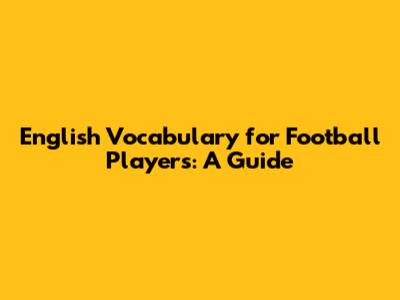 English Vocabulary For Football Players: A Guide