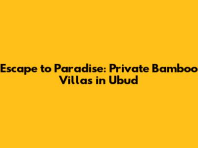 Escape To Paradise: Private Bamboo Villas In Ubud