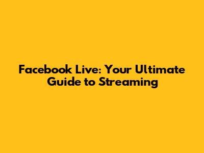 Facebook Live: Your Ultimate Guide To Streaming