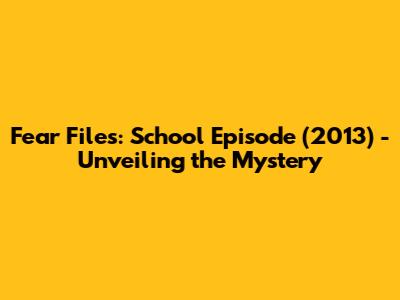 Fear Files: School Episode (2013) - Unveiling The Mystery