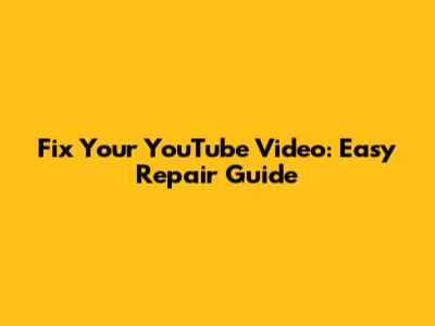 Fix Your YouTube Video: Easy Repair Guide