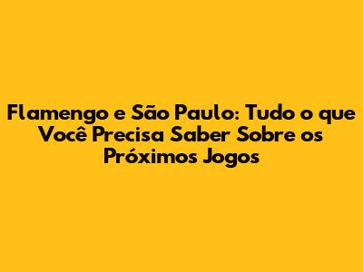 Flamengo E São Paulo: Quando E Onde Assistir Aos Próximos Jogos