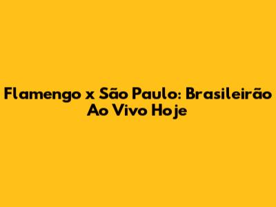 Flamengo X São Paulo: Brasileirão Ao Vivo Hoje