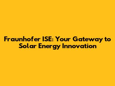 Fraunhofer ISE: Contact And Location Details