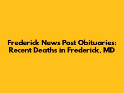 Frederick News Post Obituaries: Recent Deaths In Frederick, MD