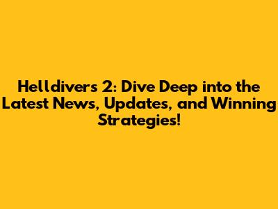 What's New in Helldivers 2? Fresh News and Game Updates!