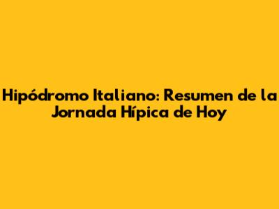 Hipódromo Italiano: Resumen Y Resultados De Hoy