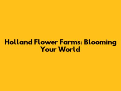 Holland Flower Farms: Blooming Your World