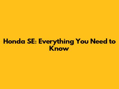 Honda SE: Everything You Need To Know