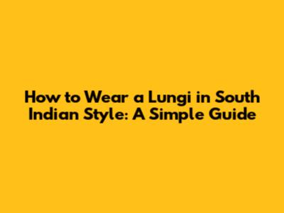 How To Wear A Lungi In South Indian Style: A Simple Guide