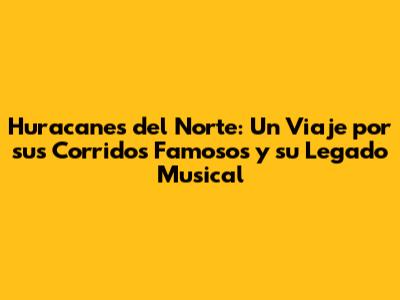 El legado de Huracanes del Norte es un testimonio de su talento, su dedicación y su pasión por la música. Han logrado crear un repertorio de canciones que han tocado el corazón de millones de personas y que seguirán siendo escuchadas por generaciones. Han demostrado que la música puede ser una herramienta poderosa para contar historias, para conectar a las personas y para celebrar la vida.