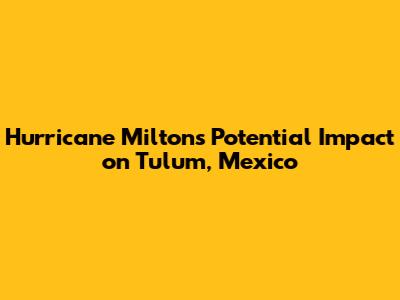 Hey guys! Let's dive into something pretty serious: the potential impact of Hurricane Milton on the beautiful coastal paradise of Tulum, Mexico. Understanding the potential effects of a hurricane on a place like Tulum is super important, whether you're a local, a tourist planning a trip, or just someone who loves the Riviera Maya. We'll break down everything you need to know, from the current forecasts to what you can do to stay safe. So, buckle up, and let's get into it!