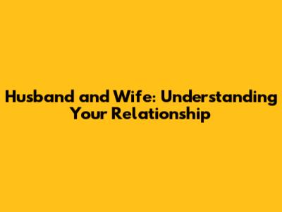 Husband And Wife: Understanding Your Relationship