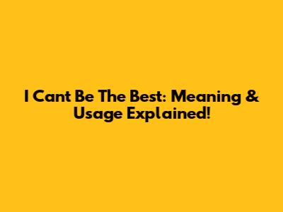 I Can't Be The Best: Meaning & Usage Explained!
