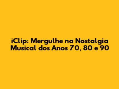Prepare-se para redescobrir as músicas que marcaram época e que continuam a inspirar novas gerações. No iClip, você encontrará uma curadoria especial com os maiores sucessos dos anos 70, 80 e 90, com artistas lendários e canções que se tornaram verdadeiros hinos. Deixe-se levar pela nostalgia, reviva emoções e compartilhe essa experiência com amigos e familiares. O iClip é a sua plataforma definitiva para explorar e celebrar a música que moldou a nossa história.