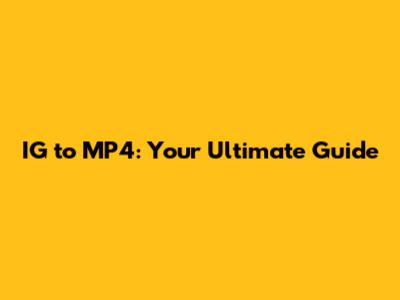 IG To MP4: Your Ultimate Guide