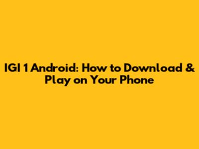 IGI 1 Android: How To Download & Play On Your Phone