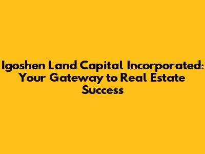 Igoshen Land Capital: Your Gateway To Real Estate Success
