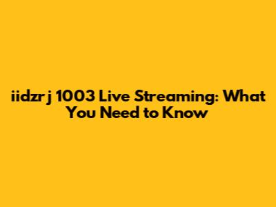 Iidzrj 1003 Live Streaming: What You Need To Know