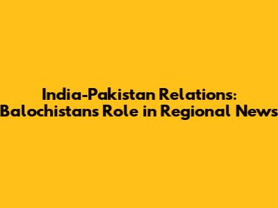India-Pakistan Relations: Balochistan's Role In Regional News