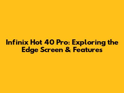 Infinix Hot 40 Pro: Exploring The Edge Screen & Features