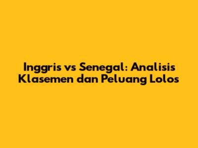 Semoga artikel ini memberikan wawasan yang berguna bagi Anda dalam memahami pertandingan Inggris vs Senegal dan klasemen terkait. Jangan lupa untuk terus mengikuti perkembangan sepak bola dan memberikan dukungan kepada tim favorit Anda!