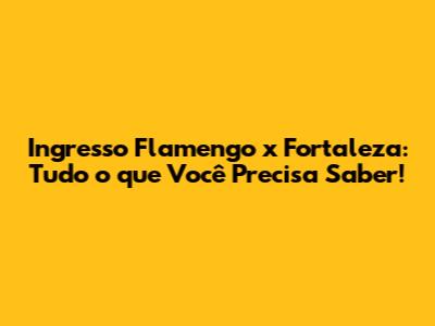 Ingresso Flamengo X Fortaleza: Guia Completo E Dicas!