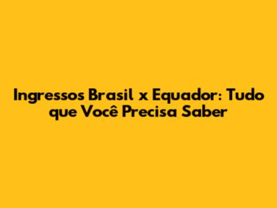 Ingressos Brasil X Equador: Guia Completo Para Fãs