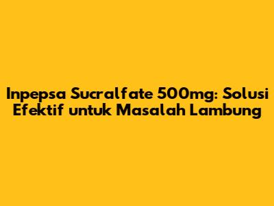 Hey guys! Pernahkah kamu merasa gak nyaman karena masalah lambung seperti sakit maag atau tukak lambung? Pasti ganggu banget kan? Nah, kali ini kita akan bahas tuntas tentang salah satu obat yang sering direkomendasikan dokter untuk mengatasi masalah tersebut, yaitu Inpepsa Sucralfate 500mg. Kita akan kupas tuntas mulai dari apa itu Inpepsa, manfaatnya, cara penggunaannya yang tepat, hingga efek samping yang perlu kamu ketahui. Jadi, simak terus ya!