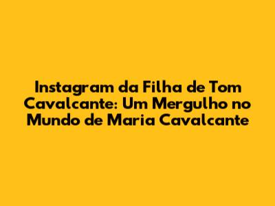 Instagram Da Filha De Tom Cavalcante: Tudo Que Você Precisa Saber!