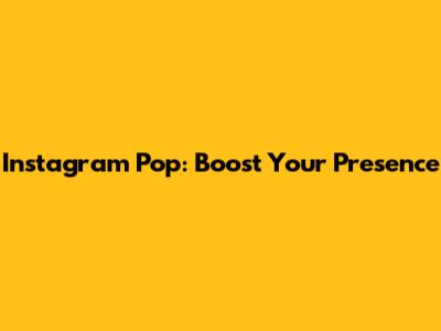 Instagram Pop: Boost Your Presence