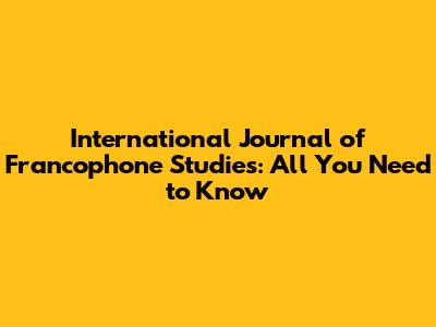 International Journal Of Francophone Studies: All You Need To Know
