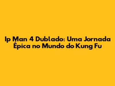 Ip Man 4: O Desfecho, o filme completo dublado, é a conclusão eletrizante da saga de um dos maiores mestres de Kung Fu da história, Ip Man. Este filme, que conquistou o público em todo o mundo, agora está disponível para você assistir online, totalmente dublado em português. Prepare-se para uma experiência cinematográfica inesquecível, repleta de ação, drama e as incríveis artes marciais que tornaram a série tão famosa. Se você é fã de filmes de artes marciais, prepare-se para ser arrebatado por esta história inspiradora. Vamos mergulhar nos detalhes de Ip Man 4 e descobrir por que este filme completo dublado é um sucesso.