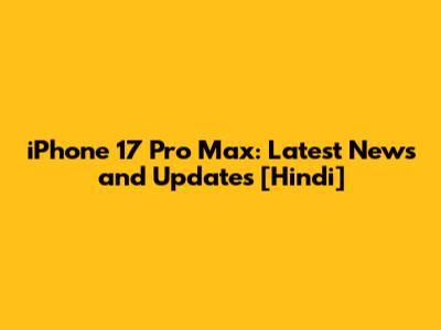 IPhone 17 Pro Max: Latest News And Updates [Hindi]