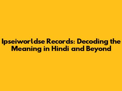Ipseiworldse Records: Hindi Meaning & Insights