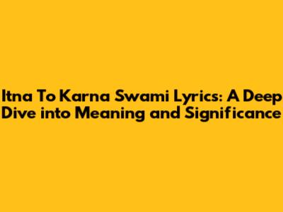 Itna To Karna Swami Lyrics: A Deep Dive