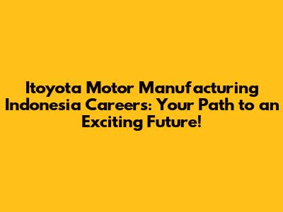 Hey everyone! Are you guys looking for a killer opportunity to kickstart or boost your career? Well, listen up, because we're diving deep into the Itoyota Motor Manufacturing Indonesia careers scene. Itoyota isn't just another company; it's a powerhouse in the automotive industry, known for its innovation, quality, and commitment to its people. If you've ever dreamt of being part of a team that shapes the future of mobility, then this is your chance! We're going to break down what makes Itoyota such a fantastic place to work, the kinds of roles you might find, and how you can snag one of these awesome positions. So, grab a coffee, get comfy, and let's explore the exciting world of Itoyota Motor Manufacturing Indonesia careers together. You might just find your dream job waiting for you!