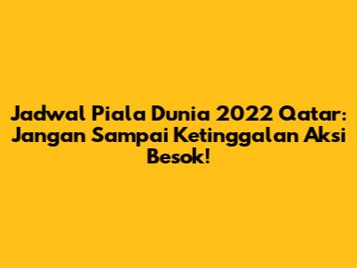 Hey guys, siap-siap nih buat demam Piala Dunia 2022 di Qatar! Pasti udah pada gak sabar kan buat nonton tim jagoan kalian berlaga? Nah, biar gak ketinggalan keseruannya, yuk kita bahas jadwal Piala Dunia 2022 untuk pertandingan besok. Dijamin, informasi ini bakal bikin kalian makin semangat dan gak sabar buat ngikutin setiap pertandingannya. Kita akan bahas secara detail, mulai dari tim yang bertanding, jam tayang, sampai tips-tips seru buat nonton bareng teman atau keluarga.