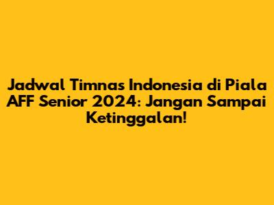 Guys, Piala AFF Senior 2024 sudah di depan mata, nih! Buat kalian para pendukung setia Timnas Indonesia, pasti udah nggak sabar kan buat dukung Garuda beraksi di lapangan hijau. Nah, biar nggak ketinggalan momen penting, kali ini kita bakal bahas lengkap seputar jadwal Timnas Indonesia di Piala AFF Senior 2024. Mulai dari kapan pertandingannya, siapa aja lawannya, sampai di mana kalian bisa nonton langsung keseruannya. Yuk, simak ulasan lengkapnya!