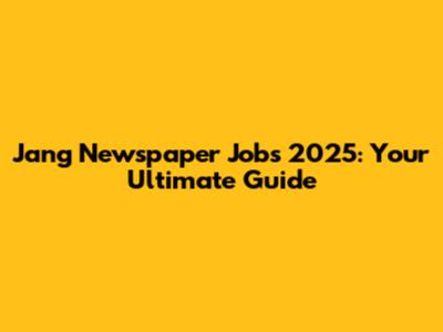 Jang Newspaper Jobs 2025: Your Ultimate Guide
