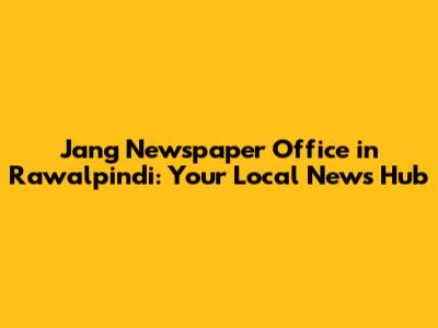 Hey guys! Let's dive into the world of local news and explore the importance of the Jang Newspaper office in Rawalpindi. This isn't just another building; it's a central point for information, a place where stories are born, and where the pulse of the city is felt. For anyone interested in staying updated on what's happening in Rawalpindi and beyond, understanding the role and presence of the Jang office is key. It's where journalists work tirelessly to bring you the news, from the mundane to the momentous, shaping public discourse and keeping you informed.