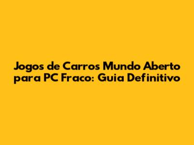 Jogos De Carros Mundo Aberto Para PC Fraco: Guia Definitivo