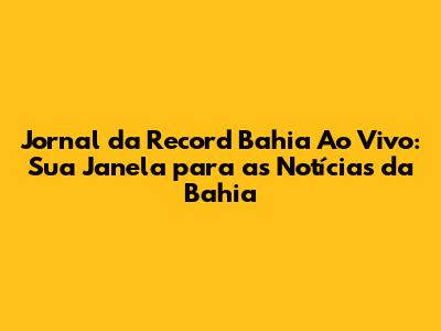 O Jornal da Record Bahia é o principal telejornal da Record TV Itapoan, afiliada da Record TV na Bahia. Ele é transmitido diariamente, levando aos lares baianos as principais notícias, reportagens, entrevistas e análises sobre os acontecimentos que impactam a vida dos cidadãos. O jornal aborda temas variados, como política, economia, segurança pública, cultura, esportes, saúde e meio ambiente, sempre com o objetivo de informar e orientar o público.