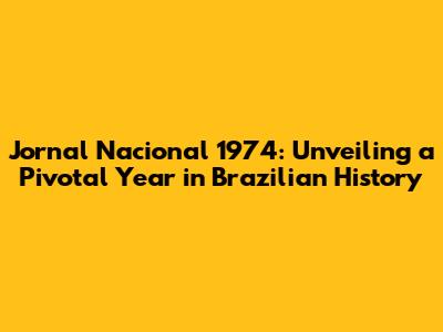 Hey guys, let's dive into the fascinating world of Brazilian television history, specifically focusing on Jornal Nacional 1974. This year was super critical for the news program and for Brazil as a whole. We're talking about a period of significant social, political, and cultural shifts. So, grab your popcorn (or your favorite Brazilian snack!), and let's take a closer look at what made 1974 so memorable for the iconic news broadcast. We'll explore the main stories covered, how the program evolved, and the impact it had on the Brazilian public. Buckle up, because this is going to be a captivating journey!