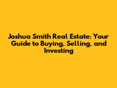 Who is Joshua Smith? Understanding the Real Estate Expert