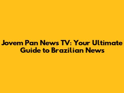 What is Jovem Pan News TV and Why Should You Care?