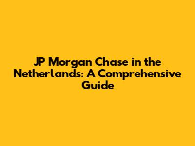 JP Morgan Chase In The Netherlands: A Comprehensive Guide